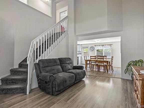 Beautiful two-story home with a three-car garage, extended driveway, steps away from a park, and in the perfect location! Near open space, Trail Winds Recreation Center, schools, shopping, and dining, enjoy the convenience of being near all amenities. This home welcomes you into the bright living room and flows to the dining and kitchen area. The eat-in kitchen boasts tile flooring, quartz counters, newer painted cabinets, center island, backsplash, and double convection smart oven. Venture upstairs to find the primary bedroom with attached bathroom, two secondary bedrooms, and full bathroom. Head to the basement to find a flex room perfect for an office space, non-conforming fourth bedroom, and laundry room. Bring the entertainment outside to the fully fenced and grassed backyard featuring a large patio. Near all major routes like E-470 and I-25 make the commute to Denver or DIA seamless. Don’t miss this amazing opportunity to own this two-story home with a three-car garage in the perfect location!