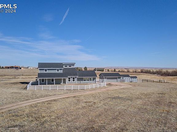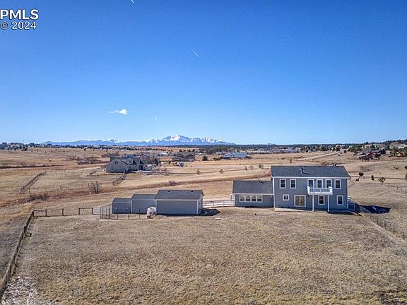 Welcome to your stunning custom-built 2-story retreat nestled on a peaceful cul-de-sac within the coveted Latigo Trails community, just off Meridian Road. This move-in ready haven offers the perfect blend of tranquility and convenience. Featuring 3.22 acres, 4 bedrooms, 2 bathrooms, and mountain views – this home has it all! As you step onto the covered front patio, you'll be greeted by serene mountain views and the quiet charm of the neighborhood. With county open space bordering the property, enjoy an added layer of privacy in your own slice of paradise. The main level boasts a recently added family/sunroom, spanning 576 sq. ft., featuring windows on three sides and access to a spacious patio, ideal for relaxing or entertaining. Vaulted ceilings and hardwood floors welcome you into the heart of the home, where the kitchen awaits with all appliances, a convenient counter bar, and seamless flow into the dining room. Vaulted ceilings open to the loft, providing versatility as a fourth bedroom, study, or additional living area (please note - the loft is not being counted as a 4th bedroom, however it can easily be closed off for added privacy. Retreat to the expansive master suite on the upper level, complete with a gas log fireplace, private deck, and a luxurious 13x11 master closet illuminated by a window. Pamper yourself in the full bath featuring double vanities. Outside, discover practical amenities such as a storage shed and an oversized 2-car garage, ensuring ample space for all your belongings! This home is equipped with newly installed central air conditioning, ceiling fans, and newer vinyl windows. Your comfort is further enhanced with the inclusion of a washer and dryer, and two additional storage sheds. Don't miss the opportunity to make this remarkable property your own, where every detail has been thoughtfully curated for your enjoyment and convenience. Schedule your private showing today and experience the epitome of Colorado living!