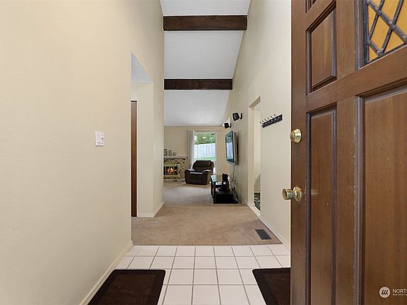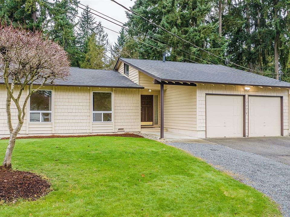 Meticulously maintained 1659 sqft. 3 bd, 2 bth rambler located on nearly 1/3 acre at the end of a private drive. Upon entrance, you are warmly greeted with 16ft+ wood beam vaulted ceilings and gas fireplace in sunken living room, included high tech wired surround system, kitchen w/ eating space and dining room. Spacious primary bedroom has slider that opens to a peaceful backyard and concrete pad used for hot tub. The backyard gets plenty of sun w/ raised garden beds that provide plentiful space for gardening and entertaining. A/C installed, wired for generator, 3yr roof, RV parking w/ 50amp plugin. Lots of parking. Close to shopping, entertainment & restaurants, Mill Creek Town Center & Min to I-5 and 405.