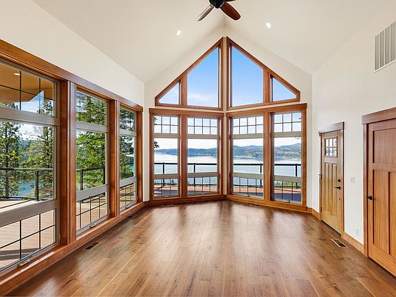 Epic Uninterrupted Lake Views! Move in Ready New Construction! A beautiful open layout with a main floor master suite and all utilities. Attention to detail in all the amenities - granite throughout, custom cabinets, engineered hardwood floors, vaulted ceilings, high quality triple pane windows. This home is filled with natural light and amazing views of Lake Coeur d'Alene. This community boasts a private beautiful sandy beach, marina, and airstrip. Available with a boat slip at $479,000.