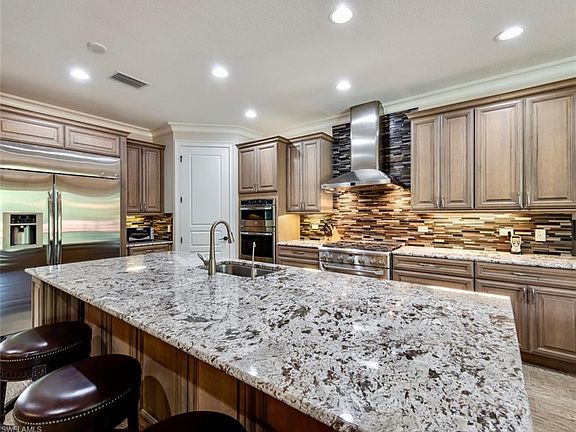 Paradise awaits in the exclusive gulf access community of Savona Bay that is nestled between St. Charles Harbor and Catalpa Cove in South Fort Myers. Take a quick boat ride down the canal to the Caloosahatchee River where you are minutes to the Gulf of Mexico, Sanibel, and Fort Myers beaches. This gorgeous 4 bedroom 4.5 Bella Verona floor plan with preserve view boasts over 3500 sq ft of living space and has a large bonus room on the 2nd floor with walk-in closet and full bath. The custom designed kitchen features upgraded cabinets, glass mosaic back splash, stunning granite counter tops, large island, walk-in pantry, and GE Monogram stainless steel appliances that include gas stove, hood vent, oversized refrigerator, convection oven, ultra quiet dishwasher, and microwave. The luxurious master has his/her walk-in California closets and the master bath is complete with dual vanities, jetted soaking tub, and walk-in shower with 2 shower heads and body sprayers. Bedroom 3 is complete with walk-in closet and it's own ensuite bath. Enjoy the spectacular Florida sunsets from the screened lanai that features a half bath, integrated pool and spa with gas heater, and salt water system.