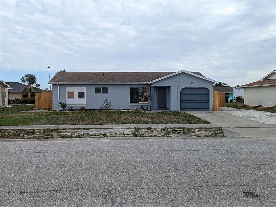 Back on the Market! Ready for a Fixer Upper?!! Doing some TLC and you have a home with a private pool. Pool works and is being upkept by the sellers. Pool even has therapy jets. This 2/1.5 home has a lot of potential. Enclosed Florida room with sliders to the NEW fenced in yard with pool. Garage has been converted to half storage, half 3rd bedroom. 7x7 Shed with access off the lanai. Gardens of Gulf Cove boosts two pools, club house, close to shopping, restaurants and beaches. Come see this one today!!!!