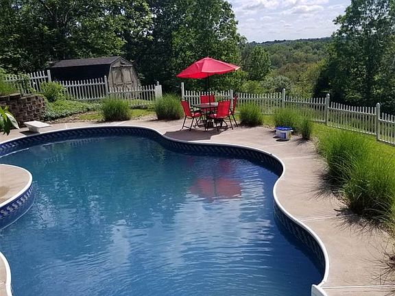 Price Reduced! Absolutely wonderful 4 bedroom, 3 full bath ranch on 2.45 ac. of land to play on! Home boasts beautiful wood flooring throughout the main level w/freshly painted walls Cathedral ceiling & gorgeous rock fireplace. Nice kitchen w/lots of storage & includes appliances. Split bedroom w/4th bedroom in the LL w/walkout onto the patio. LL Family room, office, & loads of storage! Underground dog fence w/2 collars. Deck off the dining room area leads to a nice patio below for outside enjoyment & nice peaceful view of the countryside. Lovely inground pool. Home Sweet Home is calling!!