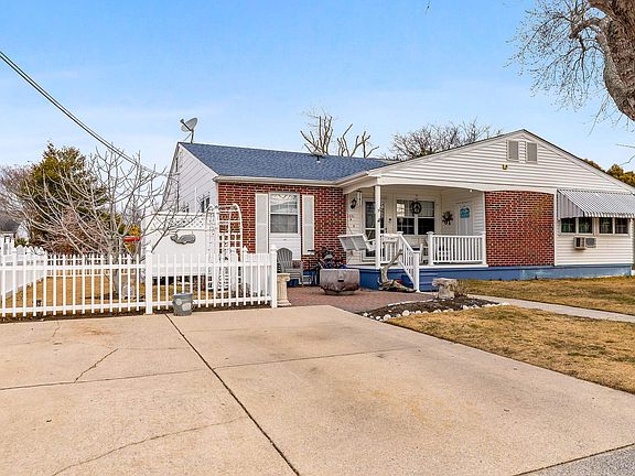 Welcome to your dream beachside retreat! This adorable 2-bedroom, 1.5-bathroom single-family quad is just 7 blocks from the beach—where the sand and surf are just a short stroll or bike ride away! Nestled in the peaceful and friendly Village Green community, this home is the perfect balance of serene living and easy access to everything you need. Step inside from your freshly refinished, covered porch with stylish composite decking, a porch swing and crisp white vinyl rails—ideal for unwinding with a cocktail or savoring your morning coffee in the fresh air. Inside, this home is filled with natural light and boasts an open floor plan that makes it feel even more spacious. The living room features hardwood floors that flow seamlessly into the eat-in kitchen area, where you'll find ample cabinetry, great countertop space, and a layout perfect for cooking and entertaining guests. The full bath is updated with a chic stone floor, adding a touch of luxury. The master bedroom has been thoughtfully expanded to include a convenient half bath, offering privacy. There's also an additional guest room, ideal for family or friends. You'll find plenty of storage space in the attic with pull-down stairs, plus extra room in the attached laundry shed right next to the porch. Outdoor living here is just as inviting! Enjoy sunny afternoons on the pavered patio or relax in your own private fenced-in yard with a grassy lawn and an outside shower great for washing sandy toes. Plus, the home features a brand new roof, installed in 2019, so you can move in with peace of mind. Off street parking for one car but plenty of on street as well. Don't miss the chance to make this coastal gem yours—where comfort meets convenience in a prime location!