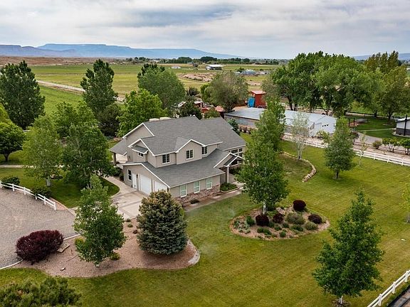 Amazing 2 story home on 10 acres in the northwest area of Grand Junction. This home has 4 bedrooms, 2½ baths plus an office. Family room with stone gas fireplace, open kitchen with island, granite counter tops, plus double oven stove. Over sized 2 car attached garage and RV parking. Extra-large barn (30x45) with ½ bath and lots of room for toys and farm equipment plus a 30x25 open storage area. Beautifully landscaped with wonderful views. Field is grass alfalfa currently farmed by the neighbor. All info subject to error. Buyers to verify all info.