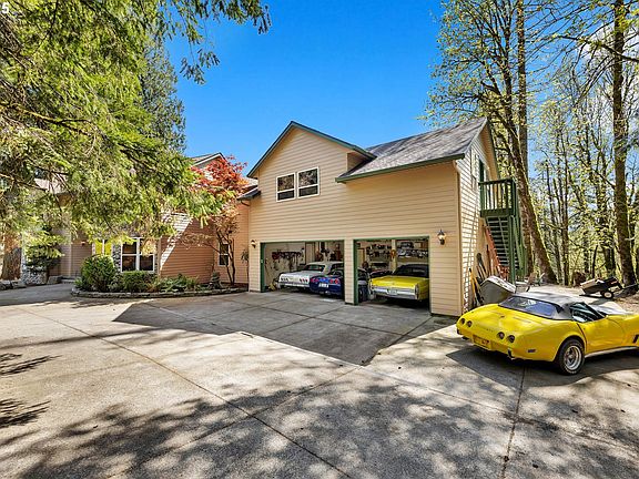 Drive along the Washougal River and through the woods to this refined rural estate. It's time for you to own a slice of paradise. 5+ acres, 5 car oversized garage, large barn with loft (used by current owner as shop for cars), pasture and pond. Property is fenced and remains wooded beyond the pond. Enter this home to be enchanted by high ceilings and warm wood throughout, you will feel at home with several open living spaces that flow from one to the other, large bedrooms, a private office, an open gourmet kitchen and dining area that everyone can enjoy. Several windows overlooking a generous yard and pond views offer plenty of natural light. Upstairs is home to Primary Suite with a huge tile shower with 4 shower heads, soaking tub and beautiful sitting area, 3 additional bedrooms and large bonus area perfect for out of town guests or even a potential ADU. The shop/barn currently holds 7 cars but could easily be used for its original purpose of horse barn, recreation vehicles or the workshop of your dreams, equipped with electricity, tons of storage and an additional covered bay, let your imagination run wild! Spend evenings on a deck with sweeping views of the property or out by the fire pit with friends. Current owners have put on a new roof and new HVAC in the last 5 years, as well as new exterior and interior paint and new carpet, Starlink internet is available and works great. You can simply move in and enjoy all the perks of country living with the ease accessibility to PDX and everyday amenities, making it the perfect blend of Pacific Northwest Living.