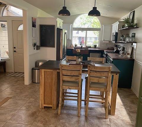 - Cathedral/Vault, Tile Counters, Dining Nook, Eat-in Kitchen, Other