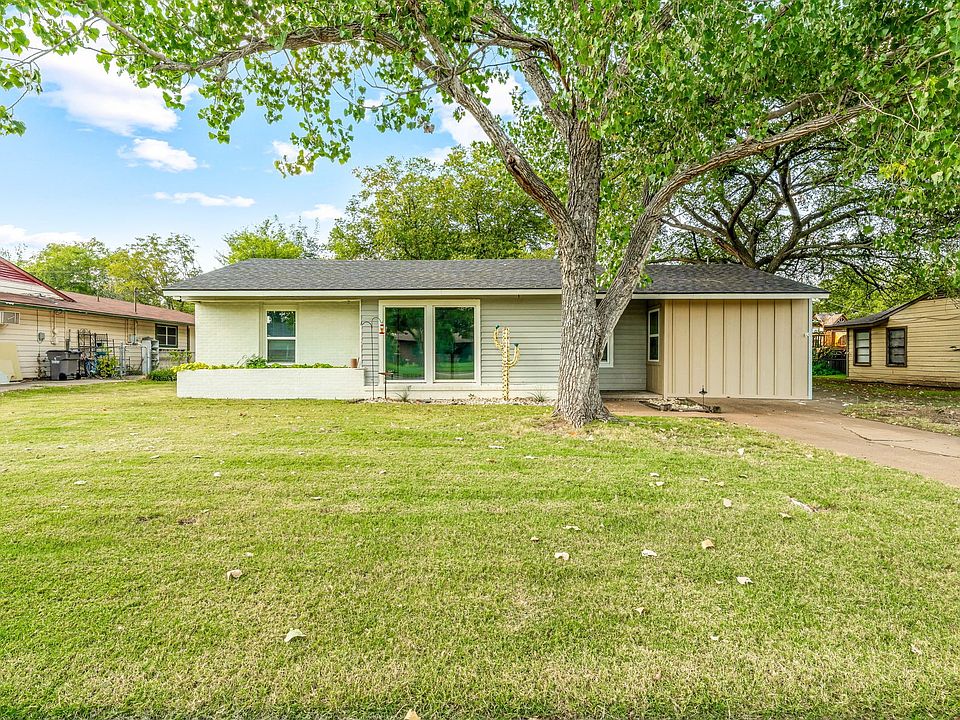 Recently remodeled and affordable beauty featuring 4 bedrooms, 2 bathrooms, OPEN CONCEPT FLOOR PLAN, New Luxury Vinyl Plank flooring that looks like wood throughout the main areas and Primary Bedroom, with newer carpet in the remaining three bedrooms. New 30 year laminated-composition roof was installed in 2023, New Windows, New Recessed Lighting makes the living, dining and kitchen areas light and bright! The Primary Bedroom boasts a barn door leading to the Primary Ensuite with beautiful emerald green subway tile shower, vanity with sink, toilet and walk-in dressing area. Split Bedroom Arrangement. Central Heat & Air. Lighted ceiling fans and window coverings throughout. Three of the bedrooms share a hall bathroom featuring a tub-shower combination, pedestal sink, toilet and linen storage cabinet. You'll love the charming front door and front porch almost as much as the HUGE concrete patio with TV mount, overlooking the very large backyard, complete with a metal kiddie pool and pool pump. This property is an entertainer's paradise with a large shade tree and plenty of level ground for a large garden or to build your own workshop with easy alley access. Chain-link fenced backyard and much, much more! NEW PRICE IS $175,499.
