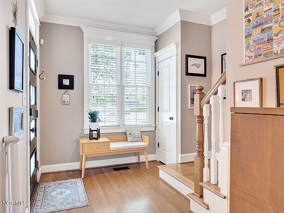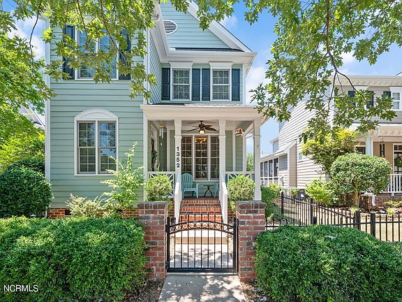 Charming Charleston style home in Renaissance Park! Unbeatable location, directly across the street from the clubhouse ft. pool, playground, tennis courts, and gym. Rocking chair front porch overlooking fenced and gated yard. Enter to warm hardwood floors and crown molding. Eat-in kitchen with granite countertops, stainless steel appliances, and seated island. Open to a cozy living room with gas fireplace and built-in speakers. Dedicated dining/flex room with custom shelves. Perfect for entertaining: screened in porch added in 2022! Spacious primary suite includes walk-in closet, whirlpool tub, split vanities, WC. 2 additional bedrooms, plus large bonus room with enough space for both guests and an office. Upstairs laundry room. 2 car attached garage. Roof replaced in 2021. All appliances convey. Minutes to downtown Raleigh!