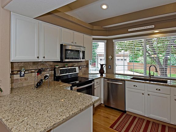 This beautiful Windsor Model floor plan is a gem in this neighborhood. Light and open home with new composite plank flooring, new Lenox AC and Furnace, new paint, granite counters and designer back splash in kitchen and much more. The private yard is very low maintenance and has an oversized stamped patio. The layout of the yard is very private and wonderful for entertaining or alone time.