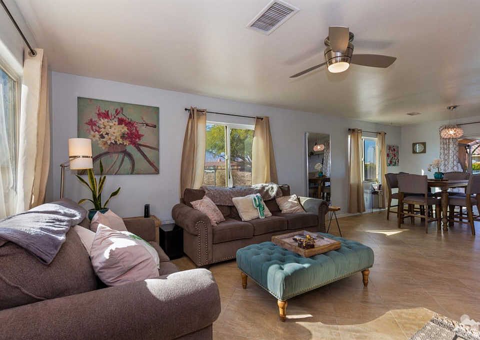 Pride of ownership shines at this highly desirable Salton City area home. This three bedroom and two bathroom home has a very well-designed floorpan with a modern open concept flow and hard surface flooring throughout. The upgraded kitchen is a cook's delight with beautiful designer tile countertops and two-toned cabinets. The owner's suite has a private bathroom. Indoor laundry room with a sliding barn door right out of your favorite interior design TV show. All electric appliances mean convenience and reduced costs. The yard is ready for you to enjoy the majestic desert views and features full fencing and a dog run. Desert landscaping is lush yet easy to maintain with irrigation already installed. Plenty of parking for all your toys. Easy commute to the Coachella Valley or Brawley. Don't let this gem get away - schedule your private viewing today!