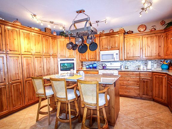 Beautiful home with all one level living and amazing views on almost 1 acre!! Incredible spacious kitchen with plenty of cabinetry, granite countertops, tile backsplash and wall oven. The home has wide doors and hallways and is wheelchair accessible, all furniture and appliances stay with the home, in-floor heat, 3 car attached garage plus large 844 sq ft detached garage, garden tool shed, 2 RV pads with power water septic...a must see!