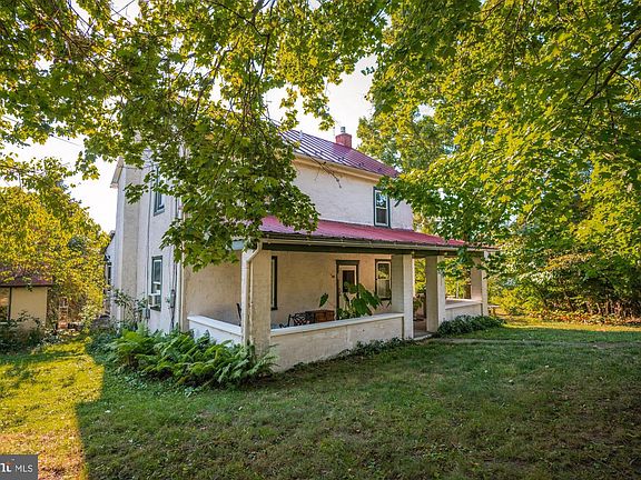 Surrounded by scenic parkland and recreational space, this attractive 2 acre farmette presents an exceptional opportunity to enjoy a country lifestyle in an historic farmhouse with a multitude of outbuildings including a charming summer kitchen and a giant bank barn. Greet guests through a picket fenced yard and deep front porch. The circa 1800s stone home features deep windowsills, a curved staircase, walk-in fireplace, exposed wood floors, and vintage hardware. The first floor includes a bright entrance foyer, large living room, modern eat-in kitchen with island, high ceiling, and solid surface counters and commanding views of the back yard. Two additional rooms, serving as bedrooms or in other capacities, a walk through pantry, and a full Bathroom are also on the main level. A charming curved staircase leads to the second floor which features 3 additional bedrooms (for a possibility of a total of 5 bedrooms) and a second full Bathroom. Stairs lead to the large attic. There's plenty of extra storage space in the full basement which includes a utility bathroom . Whether you are a hobbyist, collector or craftsman, an array of unique outbuildings will give you all the room you could possibly want. The giant barn, boasting a footprint of over 5000 square feet, extensive electrical service upgrades, multiple levels, bays and storage areas, can serve a plethora of uses for the new owner. Surrounded by the beautiful Hollenbach park, recreation including walking trails and open playing fields are literally just outside your door. Yet, the home is also within just a few minutes of many shopping opportunities and major commuter routes. A setting like this is truly hard to match.