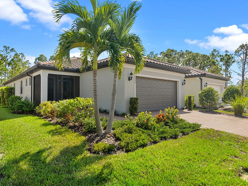Located in the exclusive 55+ community of Cypress Falls, this beautifully maintained home offers immediate availability in a place you'll be proud to live. The community is meticulously maintained and full of life, offering a range of activities. With amenities like a community pool, fitness center, tennis courts, and various clubs, you'll always have something to do. The home itself has been lightly lived in, and the care taken by its owners is evident. The open floor plan is both functional and comfortable, featuring tile flooring and fresh carpet in the bedrooms. The kitchen, with its updated aesthetic and modern appliances, is a joy to spend time in. Guests can relax at the breakfast bar and enjoy a glass of wine while you finish meal preparations. The dedicated dining area is perfect for enjoying meals with friends and family. The living room offers a view of the extended lanai, which features brick pavers and an ivy screen for added privacy. You'll enjoy the peaceful wooded view, and you might even catch a glimpse of a deer passing by. The home also includes a bonus room with French doors, ideal for use as a den, office, or guest room. The primary bedroom is thoughtfully separated from the guest room for added privacy, and the attached bathroom is well-designed for sharing, featuring a dual-sink vanity, walk-in closet, and shower with bench seating. Additionally, there's an interior laundry room with a bonus sink and overhead fan for convenience. This home provides a comfortable and inviting environment within a vibrant community where life long friends are made.