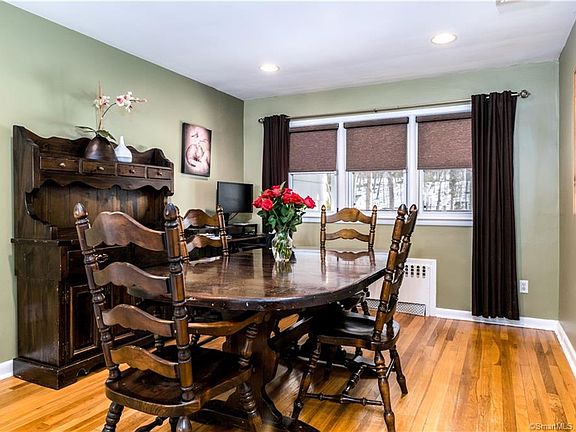Amazing opportunity to own a home in North Stamford. This charming ranch sits on a beautiful acre with an expansive, flat backyard and wooded privacy. Enjoy snowy days nestled in front of the wood burning fireplace or drinking hot chocolate in the eat-in kitchen or dining room. Spend the afternoon playing in the downstairs bonus room that can also be a third bedroom. Hardwood floors, central a/c (main level), two full bathrooms, large laundry room, abundant closet and storage space, generator ready electrical panel, invisible dog fence, and city water complete the picture. Come and make this house your own.