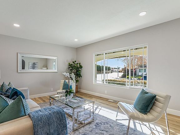 Bright and modern move-in ready San Jose home on spacious corner lot. Sunken living room with lots of natural lighting in the front. Ideal open floorplan with elegant detailing, luxury vinyl plank flooring throughout, recessed lighting. Spacious informal living room leads to formal dining, kitchen, and additional living space with cozy fireplace. Beautifully updated kitchen with quartz counters, stainless steel appliances, tray ceiling with crown molding. Flex space (permit unknown) ideal for use as home-office for your work from home needs. Primary bedroom features walk-in closet and newly upgraded ensuite bath. Low-maintenance backyard with wooden deck seating area and mature fruit trees. Great central location with easy access to Hwy 680/880/101/87, Bart, and Light Rail for commuter ease. Offers Due on Wednesday 1/13/2021 by Noon.