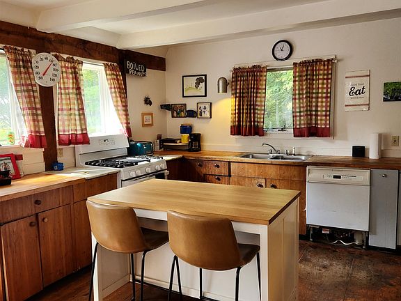 On Guilford Center Rd., you’ll find yourself on one of the County’s prettiest drives, leading you to Stage Rd. On Stage Rd, you’ll pass family farms and meadows as you wind your way to this gem. There is a lot to love just as is, or a great springboard to create the sanctuary of your dreams. The first floor is open concept with lots of light, wide plank pine flooring and full bath and has the much needed Vermont mudroom. The second floor has 2 good-sized bedrooms. The expensive wrap-around porch adds an abundance of summer living space and adds a feel of open space from inside. The full, walk-out basement has the beginning of additional living space. The detached, over-size barn/garage was once the old Guilford Forge, and provides an opportunity for creative use as more than just seemingly endless storage space. Minutes to Brattleboro, minutes to one of the area’s most treasured swimming holes, you’ll find your blood pressured lowered just on the drive home.