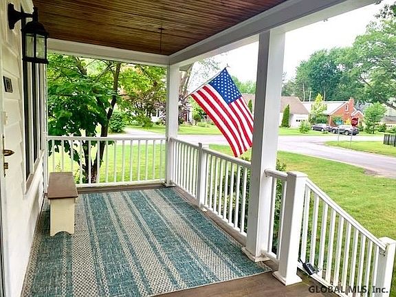 Open House Sunday 7/12, 12-2pm! Be welcomed to picturesque Old Niskayuna with this charming 3 bedroom, 2 full bath bungalow on a large corner lot! This home boasts many upgrades and charm. Hardwood flooring throughout. Upgraded kitchen with leather granite countertops, a custom garden window, newer appliances (1 to 5 years old). The entire upstairs is your fantastic owner's retreat! Large bedroom featuring exposed brick and skylight and an upgraded bath with double vanity, skylight and walk-in shower. The home is well maintained with new windows, maintenance free fencing, new garage door. Enjoy your neighborhood from your wonderful front porch, play in the large side yard and entertain in the sunroom off the kitchen, on the patio or fenced in backyard!