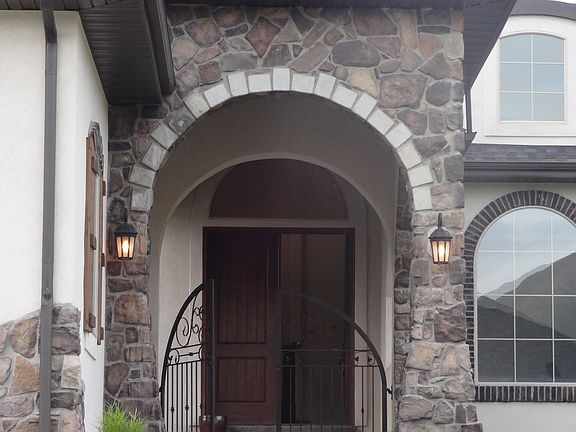 This beautifully designed French-cottage style home is nestled just below the Mapleton mountain in one of the friendliest neighborhoods in Utah, with ample space inside and out. It boasts five generous bedrooms finished with plans for a mother-in-law apartment in the unfinished basement, as well as four additional large bedrooms and a theatre. The master suite has it's own walkout balcony, as does the upstairs game room. Landscaping surrounds the home in trees and flowers, with an ample space in the backyard with an in-ground trampoline, sports court, and additional parking for boats and toys. The courtyard-style garages give room for 4-car covered parking, and vaulted ceilings and space for a workshop. The estate is conveniently located within 5 minutes from I-15, Springville and Spanish Fork shopping centers. Showings by appointment only.