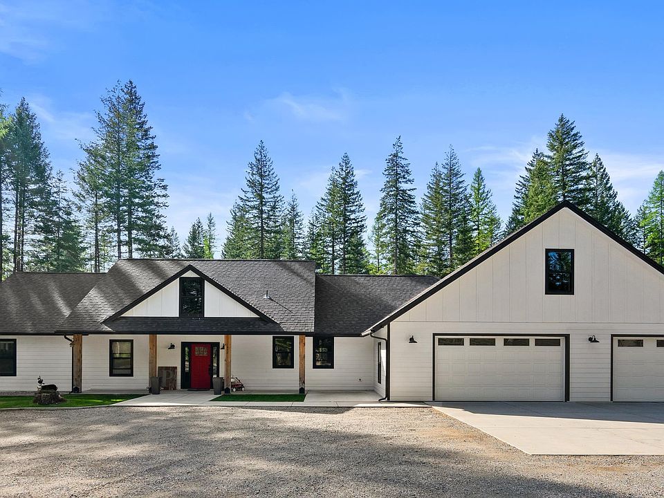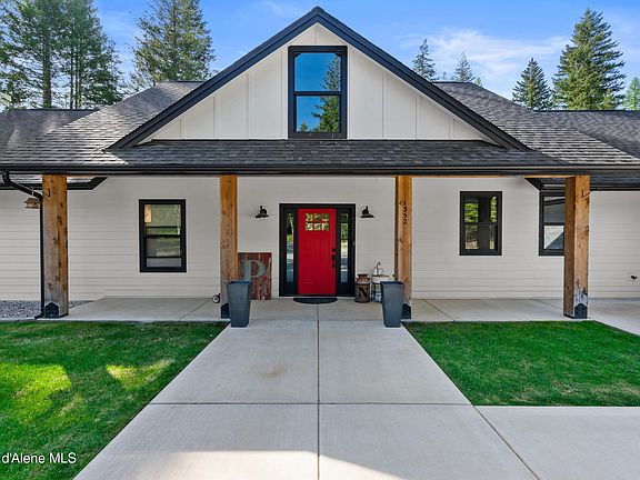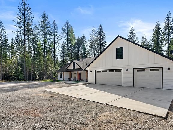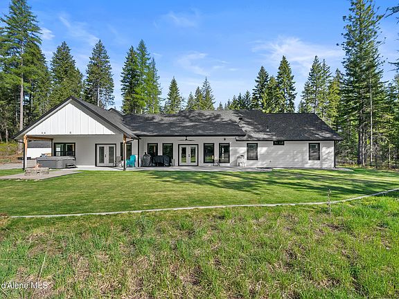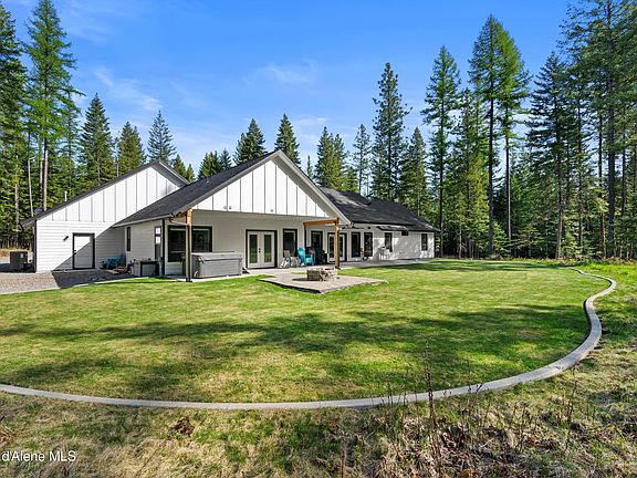 Welcome to your North Idaho dream home! Charming farmhouse style rancher situated on 20 private treed acres! Open floor plan designed for comfort, style and entertaining. Spacious kitchen features stainless steel appliances, quartz countertops, subway tile, walk in pantry with ample cabinet and storage space. Additionally, the living room features shiplap ceiling & recessed lighting throughout. The primary bedroom & bathroom boast a serene ambiance with a large soaker tub and walk-in tile shower, double sinks and hot water on demand. Exterior features offer landscaping, sprinkler system, large covered patio with built in firepit & hot tub ideal for enjoying the views. RV parking with power and water hookup, storage shed and plenty of room for your dream shop! Located close to Silverwood and Twin Lakes Golf course!