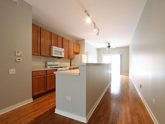 GORGEOUS Little Italy 2 bedroom 1 bath condo available August 1st, 2025. Open spacious floor plan with distinct living and dining spaces. Solid oak hardwood floors. Light grey paint thruout. Kitchen has huge island, abundant cabinet space and full line of appliances including gas stove, refrigerator, dishwasher and microwave. Large bathroom w/double sinks. Full size washer and dryer in unit. Sliding glass doors off dining room leads to back patio. Central air and heat. Perfect location on beautiful tree-lined block steps to Taylor Street and a short walk to UIC/Rush Medical District, CTA Blue and Pink Lines, UIC East Campus and so much more. Garage space included with rent. Credit check and security deposit required. Tenant pays for gas and electricity. Sorry no pets and no smoking. Available August 1st, 2025.