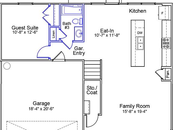 This two-story home has 5 bedrooms and 3 bathrooms. Immediately inside the entryway, the family room leads into the kitchen and eating area. Downstairs you can find crown molding throughout the main areas and a guest room right off the full bath. Upstairs are three spare bedrooms, two with walk-in closets, that share a full bathroom and a convenient laundry room. The primary bedroom connects to a spacious walk-in closet and a bathroom with dual vanities, five-foot shower, and a walk-in linen closet. Just outside of the eat-in area is a covered porch and the yard is fully sodded with landscaping and an irrigation system. Estimated completion date Fall 2022.