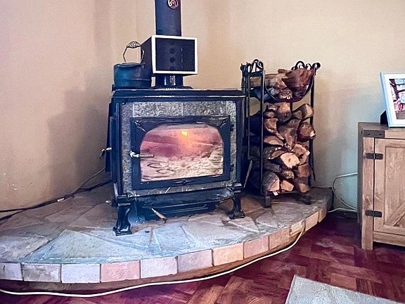 - Fireplace features: Corner, Metal, Wood Burning, Wood Burning Stove