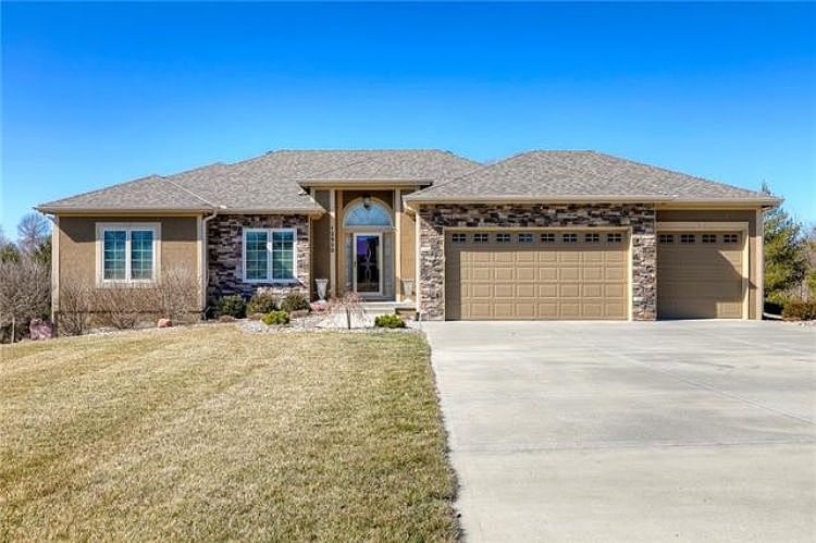 5 Year Young Revers Home in excellent condition. Kearney School District. Sits on a walkout 1.27 Acre Lot. Spacious Great Room with fireplace. Kitchen with Wood floor, granite counters, abundance of cabinets. Sizeable walk in Pantry. Breakfast Area with wood floor walks out to the deck. Nice drop zone from the 3 car garage. Large Master Bedroom, walk in closet, whirlpool tub and separate shower. Walkout Lower Level Family Room and Rec Room with wet bar. Two large bedrooms and Bath. Good storage area. Expanded deck, 1 2 covered, maintenance free floor decking. Patio. Great landscaping. Roof 1 year. Alarm system. Water softener. Bar fridge stays. Seller has yard treated.