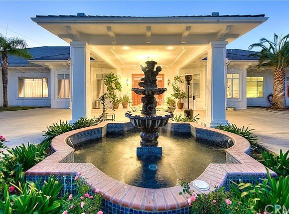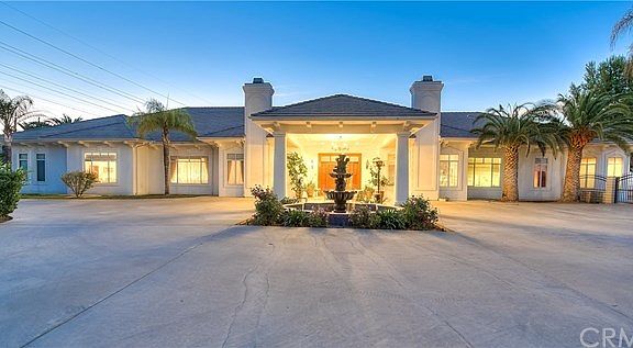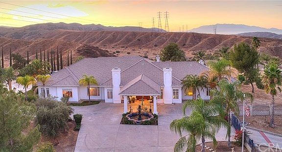 Located in the private hills of Redland's San Timoteo Canyon, this exquisite 29-acre, 7,395 square foot estate was designed for beauty. Built in 1992, you will be captivated by the five en-suite bedrooms and four additional bathrooms, the gourmet kitchen, pool house and pool, breathtaking panoramic views, tennis court, and five acres of fruit tree groves. Throughout the home you'll be enamored by mahogany crown molding and doors, custom details such as Austrian curtains to match the carpet, the master wing, and four zoned AC units.Continuing through the home's stately hallways, find five en-suite bedrooms each with unique details including gorgeous marble and tiled en-suite bathrooms and large closets. The magnificence of this home transitions seamlessly to the backyard with its stunning outdoor fountain and features an outdoor pizza oven, bar-b-que and sink. Jump into the pool or host a summer party as your guests enjoy the pool house built with changing rooms, a sauna, and a kitchenette craft room. Additional features of this estate include an attached two car garage and an unattached three car garage, a private tennis court, five-acre grove of fruit trees, a garden water well, two 10,000 gallon water storage tanks, two septic tanks, two propane tanks, and a graded empty lot ready to build another home. Schedule an appointment to see this stunning estate and make it your home!