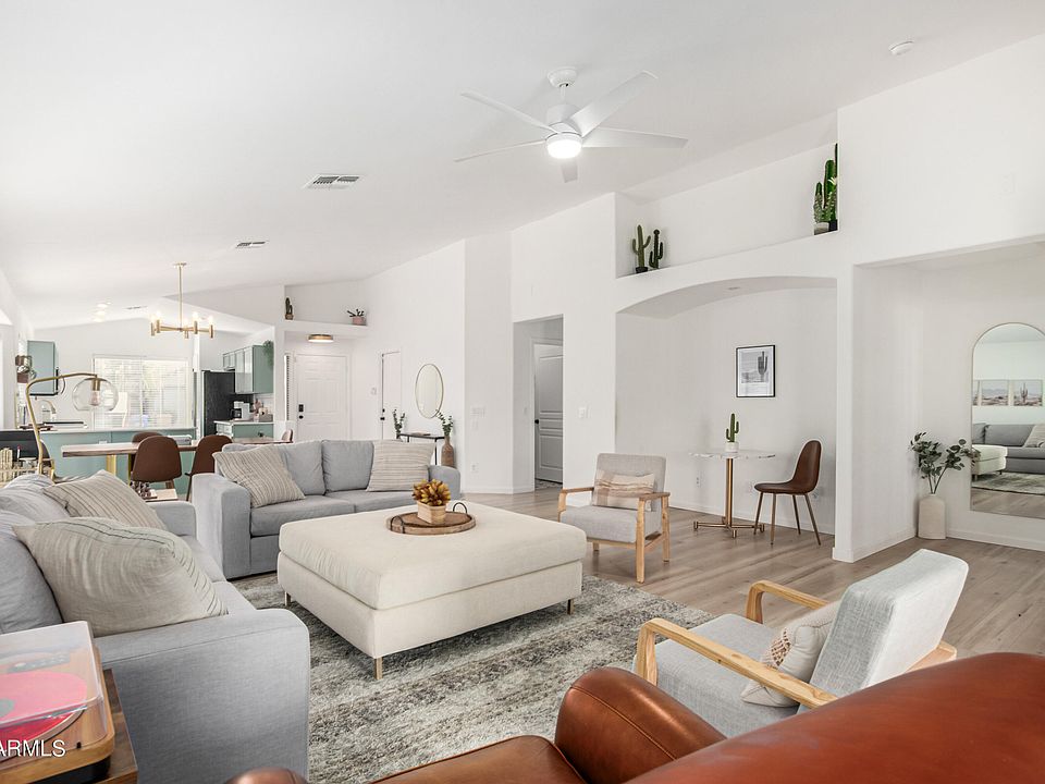 Stunning, completely updated home in prime neighborhood of Dreaming Summit! This home has a modern but cozy ascetic with an open floorplan, neutral paint, updated LVP flooring, new fixtures, and lighting, and is available furnished. Kitchen features updated cabinets, quartz counters, SS appliances, and tiled backsplash. Primary bedroom has vaulted ceiling, large closet, and beautiful en-suite bath with tiled shower, soaking tub, new vanity with dual sinks. The backyard is prime for fun with bocce ball, putting green, and paver patio. Located close to excellent schools, parks, Wigwam Golf and Resort, and Westgate amenities.