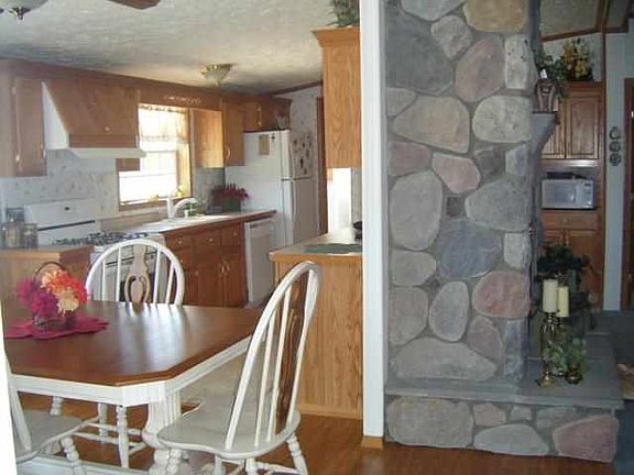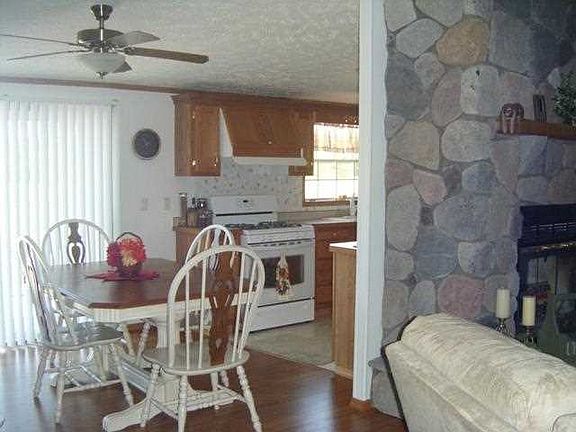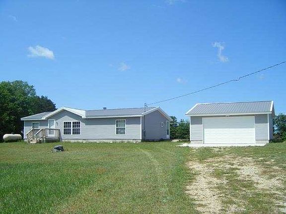 EXCELLANT CONDITION!! Very nice 3 bedroom 2 bath home with newer 2 1/2 car garage. Newer steal roof on house & garage, central air, large living room & lots of kitchen cabinets! Beautiful stone fireplace, very large master bath with garden tub & shower stall. 1 bedroom has built in cupboards/office area. Slider off dining room plus large front porch & large side porch. Located on approx. 5 acres. Some furnishings available.