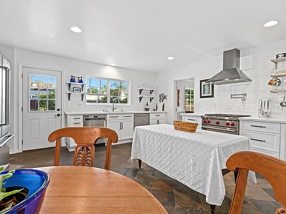 With an open floor plan concept and a timeless design, this single story home includes many upgrades throughout. Located in a beautiful North Tustin neighborhood on a 12,000 foot lot, this spacious home boasts ample natural light and over 2,300 feet of living space. Updated floors throughout the living areas includes slate stone, engineered hardwood, and newer carpet in the bedrooms. The kitchen has been completely remodeled including an expansion in 2017. Upgrades to the kitchen include, new custom cabinets, new Cambria quartz countertops, white subway tile back splash, stainless steel appliances with Wolf stove, shelving, Franke stainless still sink, and fixtures. 3 large bedrooms with an optional fourth that is currently used as a den open to the living area and 2.5 remodeled baths. The spacious master suite features a large walk-in closet, just off the en-suite bath, remodeled with imported travertine flooring and a large two-person shower, new double vanity with new fixtures - including luxurious gentle rain shower fixtures. The lot includes a manicured front yard, side yard and back yard with many mature fruit producing trees, perfect for entertaining. This home is located in the highly-rated Tustin School District, and is a short drive to Foothill High School.