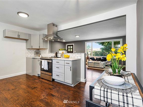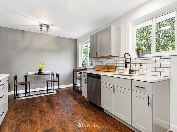 Fabulously updated 1,880 SQFT light-filled home with basement on a large lot! When entering you step into the oversized living room with large triple-pane energy efficient windows. Open concept to the stunning kitchen w/modern quartz counters, beautiful cabinets, tile backsplash and stainless steel appliances. Gorgeous vinyl plank floors throughout. Home features 3 large bedrooms, a bonus room, a flex room and a large laundry room. New roof, windows, gutters & water heater. New top quality paint inside & out. Large private back yard perfect for games or just relaxation. Don't miss the fresh Washington apples in the backyard! Long driveway for parking. Zoned UL-7200. ADU/DADU possiblities. Buyer to verify. A must see!