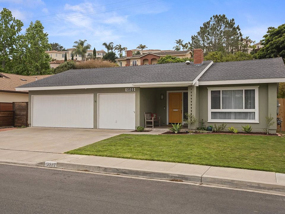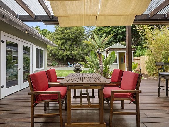 Del Mar Heights single-story home on quiet and walkable street with great privacy. Attached 3-car garage which also features a full attic for storage. Thoughtful updates to the home include: beautiful laminate plank flooring, gas fireplace, vaulted ceilings, Silestone counters, glass tile backsplash, designer paint and updated cabinets. Right off the kitchen is a large Dasso wood bamboo deck that is perfect for entertaining with retractable shade curtains. New, seller owned solar system to convey to buyers. Bonus room: detached office that is not included in square footage (permits unknown). This home has no HOA, No Mello Roos, and is walking distance to great schools, shopping, restaurants, nature preserves and outdoor activities. 4th bedroom closet removed and used as office.