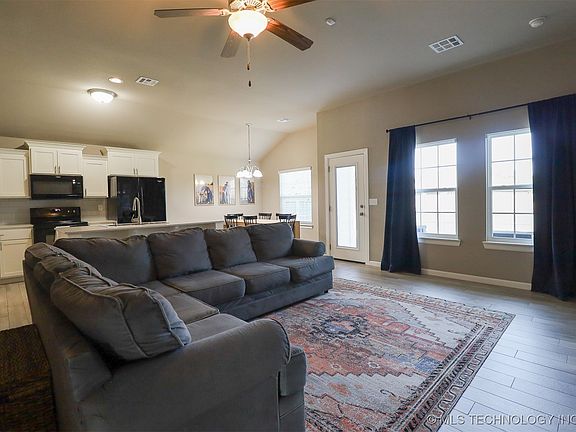 Conveniently located just off Highway 169, this home features an open floor plan with tall ceilings that create a light and spacious feel. The kitchen is finished with quartz countertops and offers plenty of space for cooking and gathering. The neighborhood includes a community pond and splash pad, making it a great place to enjoy the outdoors. This home was also featured in the Parade of Homes, showcasing its thoughtful design and quality finishes.