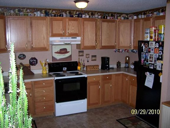 Great efficient home with small acreage just outside the city limits on blacktop. Home has new mudroom, and covered deck,neat lightfixtures and window treatments, trendy colors, appliances, nice oak cabinets, very well maintained. Nice privacyfenced area, and shed for extra storage. (Internet 5888220-11/17/2011)