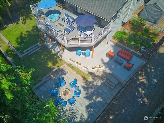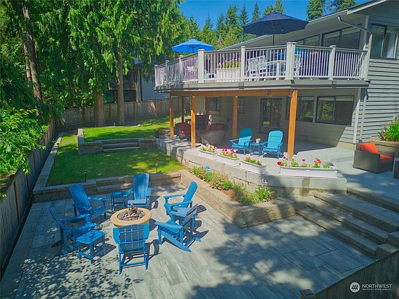 MILL CREEK ENTERTAINING DREAM! Hard to find 1-story w/daylight basement offers main floor living w/ spacious basement for entertaining or possible ADU! Enjoy main floor open concept kitchen, living room dining area w/wood burning FIREPLACE, HARDWOOD floors & access to a LARGE UPPER DECK for additional entertainment space! Furnished w/ a natural gas fire pit, eating & cooking area, perfect for gatherings. The deck faces South and overlooks a community park. A spacious primary bedroom is located on the main floor w/ attached NEWLY REMODELED BATHROOM! Lower-level boast NEW CARPET & PAINT w/ large family room, adjacent bonus room for possible gym, office or game room! Don't miss the MULTI LEVELED PATIOS w/ 2nd natural gas fire pit! A MUST SEE!