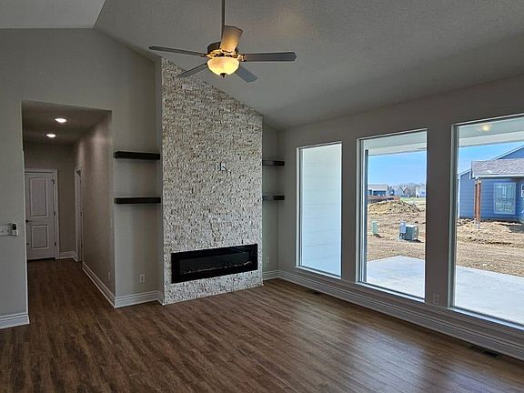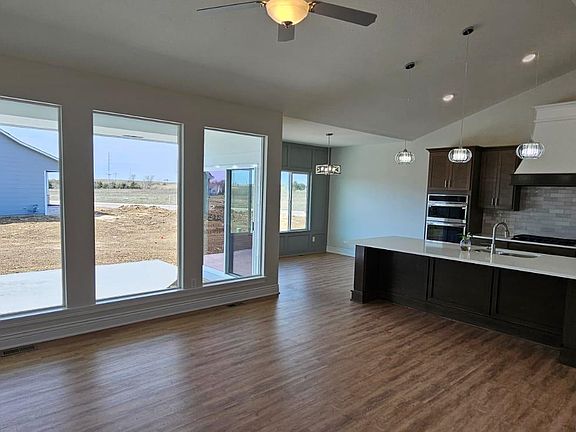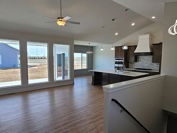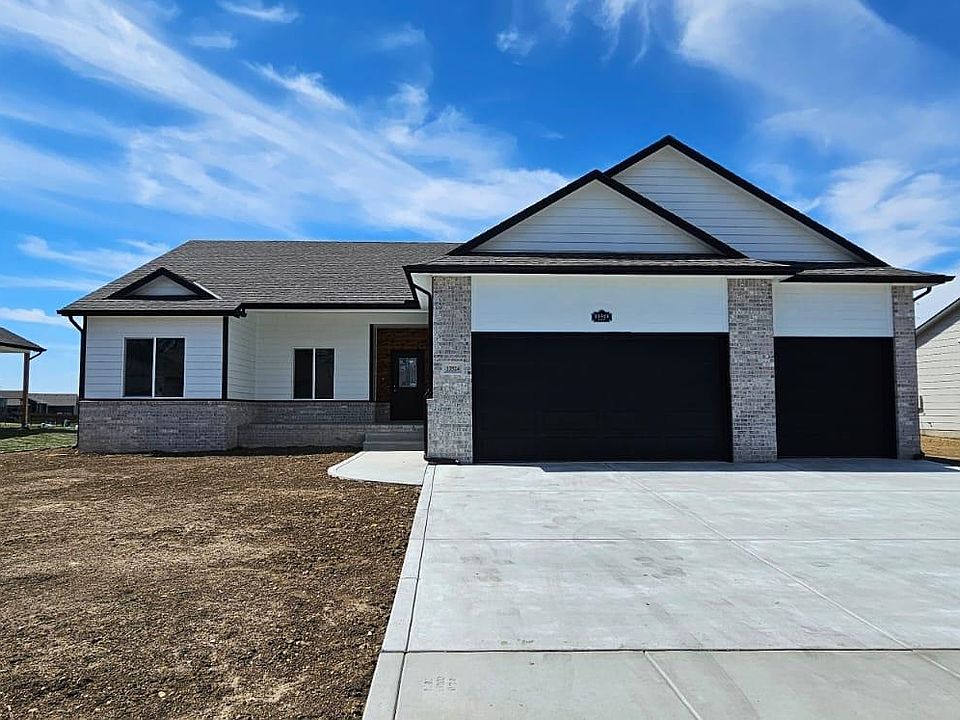 A brand new home in East Wichita at the County Hollow Addition. This home offers a total of 5 bedrooms, 3 bathrooms, and a 3-car attached garage. The spacious living room boasts a vaulted ceiling, while the kitchen features a large pantry, an island, and granite countertops. The dining room has a 10ft ceiling. There is a mud room that leads up from the garage, and the laundry room has a sink. The master bedroom is also quite spacious and features a vaulted ceiling. The master bathroom and walk-in closet are conveniently located next to the bedroom. On the main floor, you'll find two more bedrooms and a bathroom. Moving to the basement, you'll find a large family room with a wet bar, a storage room, two more bedrooms with walk-in closets, and another bathroom. To schedule a tour of this beautiful home, please call now.