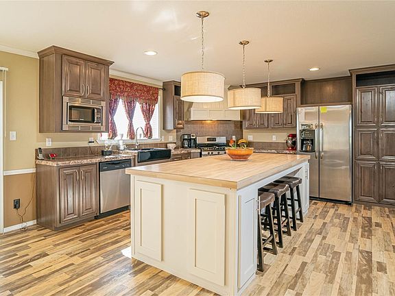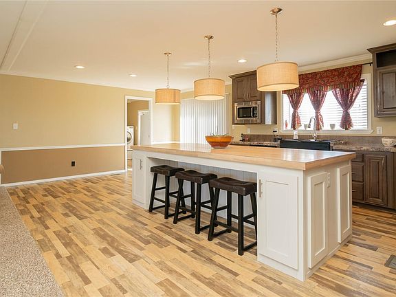 This updated 2017 home has an amazing eat-in-kitchen with upgraded stainless steel appliances, beautiful wood laminate floors and formic countertops. There is a huge pantry and a farmer's sink with stunning views out the windows. The master bathroom has two extra walk in closets and a makeup area for getting ready. The open floor plan and gorgeous interior makes this a perfect house on a great piece of land. There is a makeshift 3 stall open garage on the property.