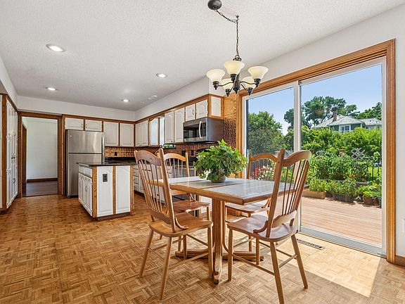 Tucked away on a quiet cul-de-sac in the heart of Cardinal Creek, this warm and welcoming home offers a timeless floorplan with generous living spaces throughout. Daily life revolves around the inviting eat-in Kitchen, where updated granite countertops, extensive cabinetry, and stainless steel appliances surround a central island—an ideal spot for whipping up delicious recipes. This space flows into the vaulted Family Room, where a gas fireplace and walk-up wet bar set the stage for relaxed gatherings with family and friends. Sip your morning coffee or unwind at the end of the day in the adjacent Three Season Porch. Just off the Foyer, a dedicated Home Office offers a quiet setting where working from home is private and productive. Across the hall, the Sitting Room and Formal Dining Room provide versatile spaces for both everyday moments and memorable celebrations. Upstairs, the spacious Primary Suite feels like a private retreat, complete with its own Sitting Room or Nursery, a ¾ Bathroom with an updated shower, and a walk-in closet. Two large Junior Bedrooms and a full Bathroom complete the upper level. The lower level offers a second Family Room with a gas fireplace which is perfect for movie nights, while the adjacent Game Room has plenty of space for a billiards or air hockey table. A second Three Season Porch is a quiet corner where you can relax and enjoy views of the backyard. In the Hobby Room, built-in cabinets and bookshelves create space for creative projects while a Guest Bedroom and ¾ Bathroom offer a comfortable and private space for visitors. Outside, the large backyard is a true highlight. Towering trees frame lush gardens, while the maintenance-free Deck and wooden Pergola provide a picturesque setting for outdoor living. Additional features include ample storage throughout, a three-car garage with an EV charging station, and a storage shed tucked neatly beneath the Three Season Porch—great for keeping garden tools and outdoor toys in order. Cardinal Creek is a vibrant, welcoming community with a voluntary association that maintains the neighborhood monuments and organizes social events throughout the year. Just steps from your front door is the Cardinal Creek Conservation Area, with over two miles of nature trails through the protected wetlands ready for you to explore. The location is truly “convenient to everywhere,” with schools, shopping, walking paths, and major commuter routes all close at hand. Forest Hills Elementary is within walking distance, the International School is only minutes away, and there is the option to open-enroll into the Minnetonka School District.