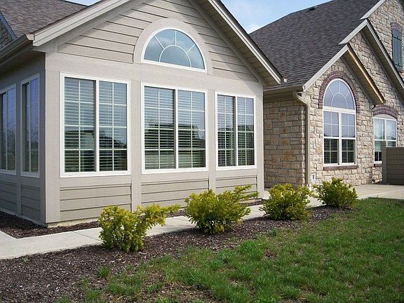 Claim the unique charm of this 2 BR w/den/guest suite, 2 BA, 15x12 veranda all season room and 2 car garage. Custom built cherry wood cabinets, ceramic tile w/beautiful hardwood floors. A custom designed floor plan w/cathedral ceilings and decorative fireplace. Has recent style amenities, clubhouse w/kitchen, fitness center & big screen TV...great for entertaining, plus a heated swimming pool. Close to Jefferson Pointe, I-69 and premier golf course. Now is the moment to 'downsize' to a carefree life style living. Prepare to be 'Wowed'. A beautiful pond view. P.S. out of city annexation means lower taxes. After Homestead R.E. taxes are est. at $1,933/yr.