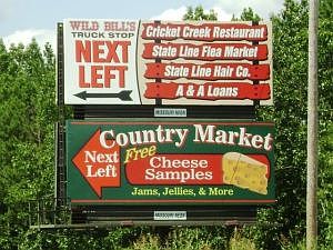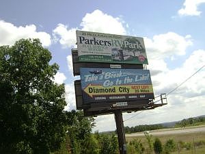 Outstanding locations 12 miles South of Branson, MO on 4 lane US Hwy 65. Great Commerical possibilities with high visibility, 2BR home, 32x30 metal building. Billboard lease is $7200 per year. Make it your home or business location or both!