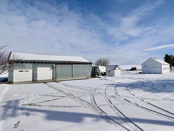 Country living with small town school system--Liberty School District. Well cared for home with great character and surrounded by beautiful Mt. Hope/Palouse countryside. Gorgeous views to Mt. Spokane & more. Nice kitchen w/bright, cheery eating nook/sunroom, formal dining room or office. Porch with brick accents, large deck to enjoy the peaceful country views, including gorgeous sunsets. 20x40 building w/full upper loft. 30x54 building w/lights. All paved access for easy commute to Spokane & Coeur d'Alene. Be on Coeur d'Alene Lake in about 25 minutes. Fronts on Fisher Creek. Basement bath is "primitive."