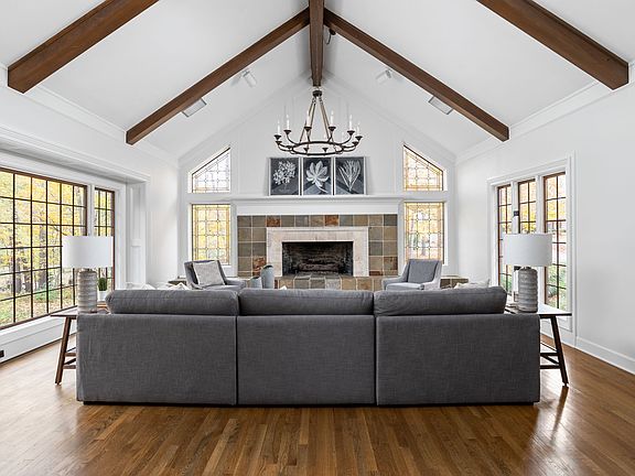 Experience the tranquility of nature at this picturesque Carmel property. Set amidst two wooded acres, which include a meadow and creek, this home caters to every preference. Unwind beside the grand stone fireplace in the expansive two-story great room. Savor the awe-inspiring views of the beautifully landscaped yard from the screened-in porch or while basking on the patio, which overlooks your own private nature sanctuary. The kitchen is flooded with natural light and boasts an additional fireplace and a walk-in pantry, complete with a dedicated homework/study area. The opulent primary suite features heated travertine floors and exquisite built-in furnishings, while the walkout lower level presents a captivating theater room and a fully equipped wet bar. This residence seamlessly marries luxury amenities with the serenity of its natural surroundings, making it a true gem among Carmel's finest homes.