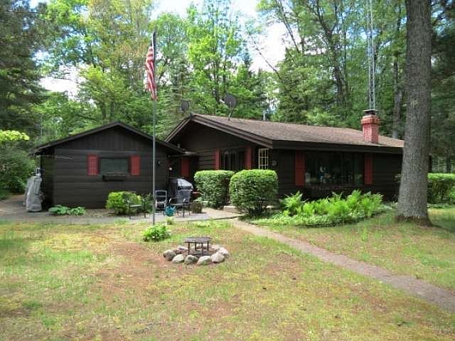 This charming three bedroom, two bath home is a must see! Home is nested on a wooded lot with extra land that's adjacent to "State Land" across the road. The inviting interior boasts large windows in the living area that provide a great panoramic view of the level yard and 104 feet of sand beach frontage on the highly sought after Manitowish chain of 10 lakes. The exterior of this gem is completed with a pier, large one car attached garage, 2 car detached garage, and 2 additional outbuildings ideal for all your Northwoods apparatus! This is an ideal Northwoods get away at a great price!