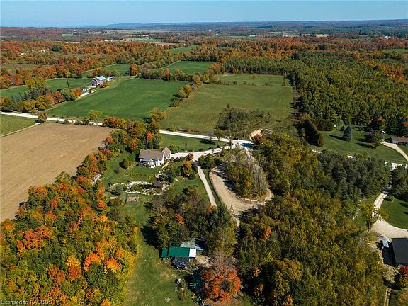 Family retreat nestled on a sprawling 12-acre private treed lot adorned with beautiful perennial gardens, ponds, & plenty of room and shelter for your farm pets!! The well-maintained bungalow boasts 2+2 bedrooms, 2+1 bathrooms, and an abundance of delightful features that will make you feel right at home with the perfect blend of serenity, comfort, and functionality. The heart of this home is the kitchen w/ views of a gorgeous pond stocked with koi fish. The open concept dining/living room is perfect for family gatherings and entertaining, creating a seamless flow throughout the main living area. Practicality meets convenience with a main floor laundry/mudroom. Downstairs, a full finished basement awaits with an additional 1072 sqft, double sliding doors and full size windows complete this spacious family room, a large cold room, a versatile office space, & the luxurious touch of in-floor heating. For those cozy winter evenings, you'll appreciate the WETT certified wood stove, while forced air propane heating & A/C offer climate control for every season. New doors with integrated blinds adorn the entire home, adding style & functionality. Step out onto the screened-in back porch or covered front porch to savour your morning coffee or enjoy the peaceful surroundings. For the avid gardener or hobby farmer, this property is a true paradise. Explore the rolling landscape, which boasts a second pond, meandering trails, & captivating character at every turn. A goat paddock with a dedicated goat house, a separate pheasant paddock, and a fully fenced-in, chipmunk-proof garden w/ raised beds await your green thumb. Additional amenities include a garden work shed & a storage run-in shed, providing ample space for your tools and equipment. The large driveway is great for tractor trailer & RV parking. Located just 10 minutes from Markdale, this property is nestled in a prime recreational area, offering endless opportunities for outdoor exploration & relaxation.