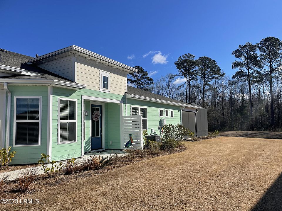 BECAUSE YOU'VE EARNED IT! This LUCIA VILLA in Latitude Margaritaville Hilton Head is ready for you to begin your new lifestyle! The Lucia model has a very wide open floor plan offering a large 3 door slider that opens up onto the full size screened extended lanai for more living space. Rear view is a lagoon and wooded preserve for privacy. This home also offers an additional Flex Room, spacious laundry room, and extended 6' x 10' garage space for extra storage or golf cart parking. Quartz counters throughout, laminate floors, ceilings fans, glass tile backsplash, kitchen stainless steel appliances, and washer and dryer included. Life Is Short - Don't Wait!
