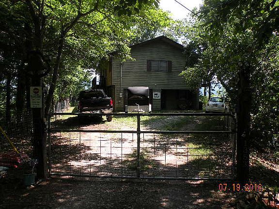 Two story frame structure with a top of the mountain Super Fantastic view. Privately positioned on 2.6 acre tract. Three bedroom two bath has two living spaces. Upstairs has two bedrooms large kitchen, fireplace in the living room and large deck for the mountain views. bottom level has a living room, kitchen, bedroom and a bath. Yard is fenced for the dogs. House needs a little TLC but is priced to sell quickly. OCCUPIED, CALL FOR APPOINTMENT.