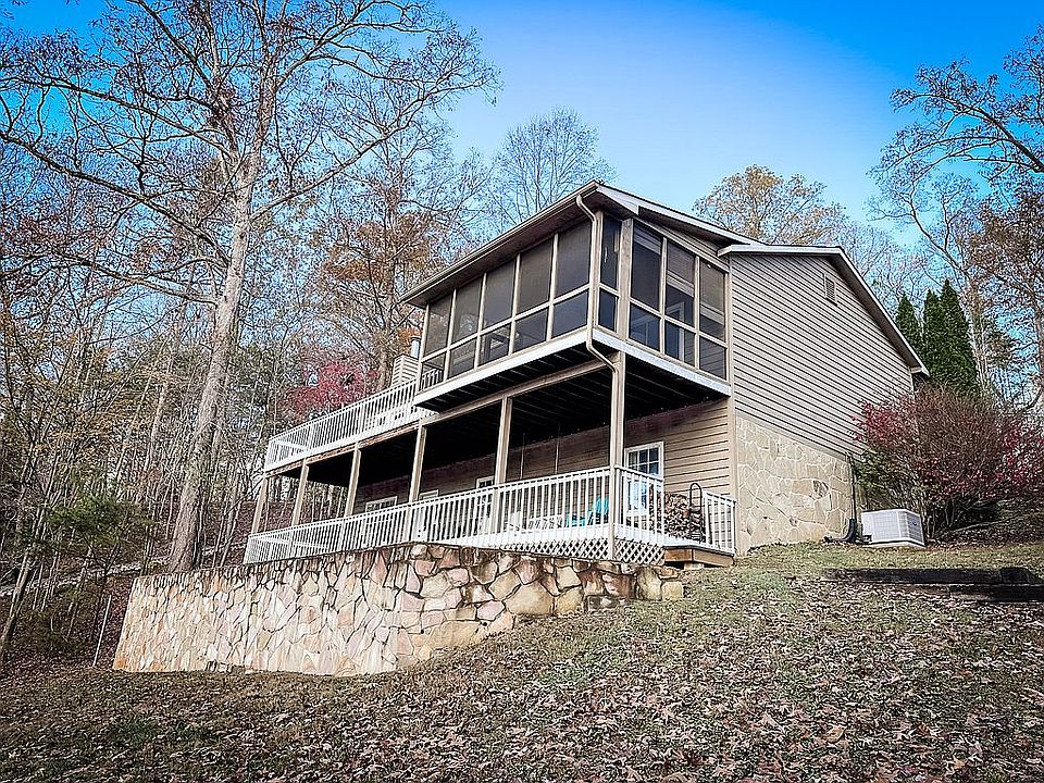 Stunning Lakefront Home with Gorgeous Views and Private Cove This spacious 3-bedroom home, plus a cozy family room with extra sleeping space, blends comfort and modern updates perfectly. The home features beautifully renovated bathrooms and an open floor plan, ideal for both relaxing and entertaining. Step outside to take in breathtaking lake views from the multi-level deck, or unwind in the screened-in porch. Nestled in a private deep-water cove with year-round water, this property offers a peaceful retreat. Much of the surrounding area is a state-protected nature preserve, providing a serene and natural backdrop. Included is a large dock with an upper deck and two boat slips. A Mastercraft ski boat, kayaks, watersport gear, and all furniture are negotiable, making it easy to move right in and start enjoying the lake life. 5.06 acre wooded building lot in proximity to 1353 Cove Pointe Road also available for sale by owner. Beautiful wooded property with frontage along Cove Pointe Road. Lot 17 of the Cove Pointe Road Subdivision. Electric and city water service available along Cove Pointe Road. Fiber being installed along Cove Pointe Road now - service coming soon. Conveniently located with quick access to I-75.