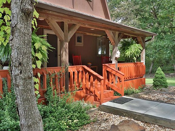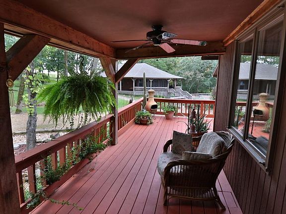 This lovely home on approx 2.65 acres features 5 Bar fence with a 10 ft fencing at entrance & overlooks the Pomme De Terre River valley just outside of Bolivar, MO The home features a private layout with 2 full levels & a loft, each with a bedroom & full bath. The 2 story windows in the living room capture the stunning view. Among the unique characteristics of the home are leaded glass windows rescued from a Joplin Church including 1 rare concave window. Authentic Mexican tile leads you into the home & the fireplaces in the main home are constructed of stone from a local church. You will enjoy the vista from the wrap around porches, decks and patios. Unique to the home is a 1700 sq ft Recreation Hall with 2 full baths, storage, second kitchen, fireplace, wood beams, wet bar & more
